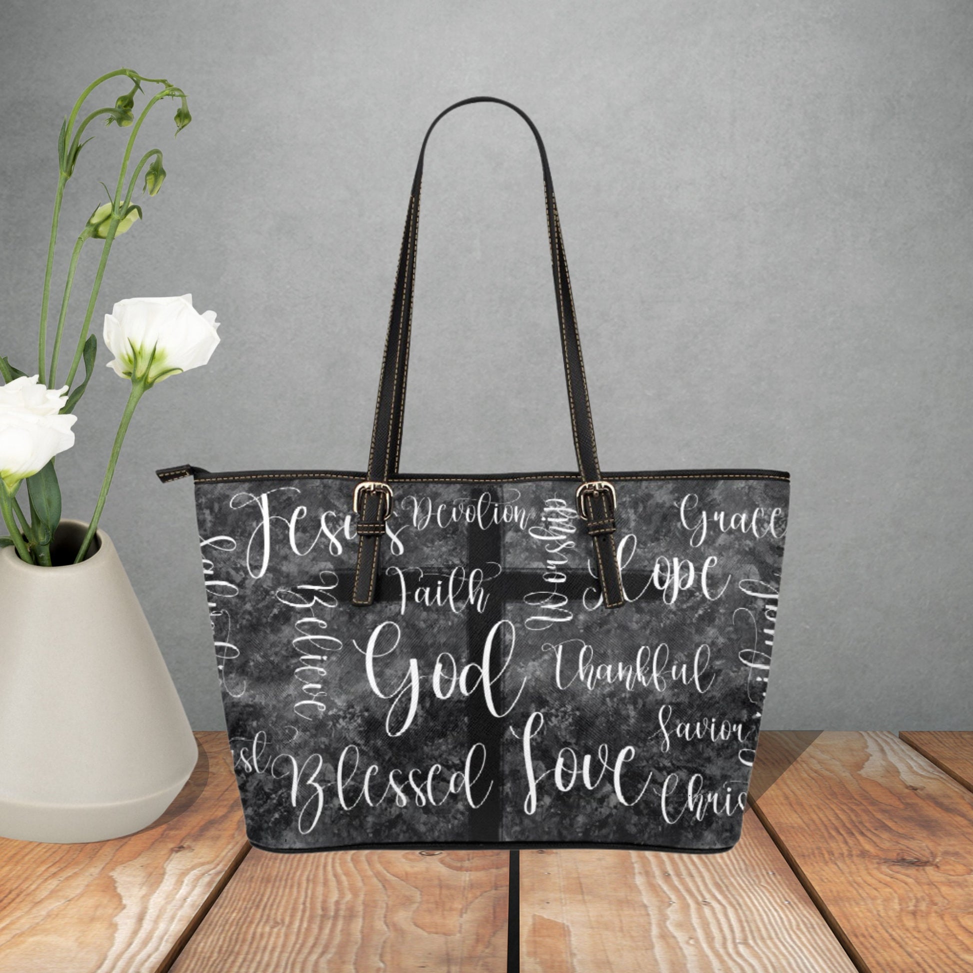 Christian handbag, Faith and inspirational words of God and Jesus on faux leather handbag, Love Jesus, Believe in God, Blessed gifts for her