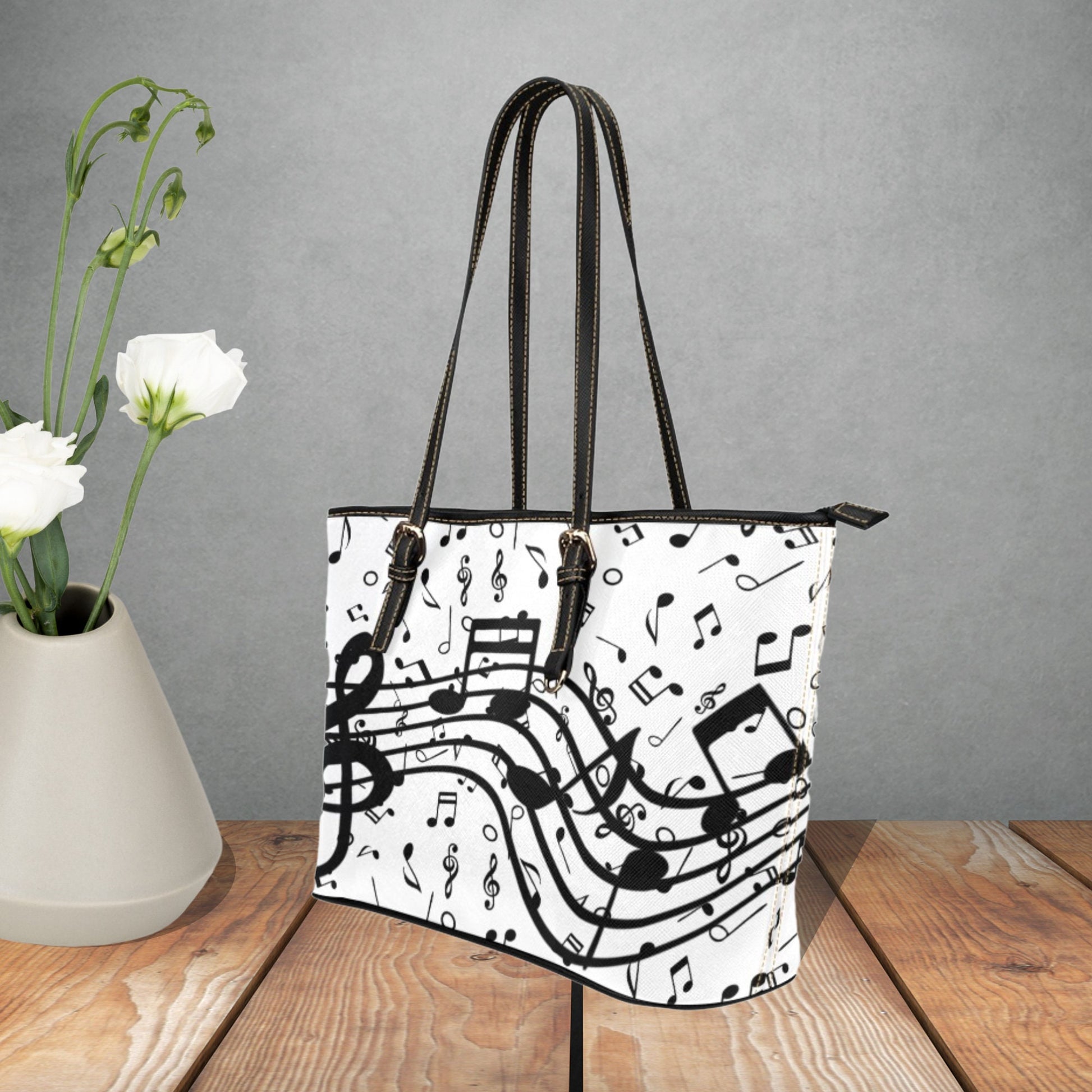 Music Notes and Treble Clef faux leather tote bag, Black and white handbag, Perfect gift for music teacher, Gift for women music lovers