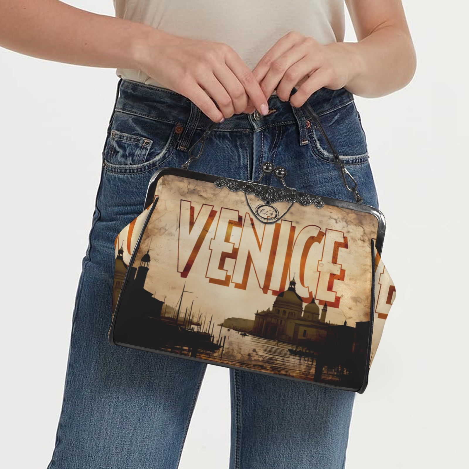 Venice Italy designed Handbag, Unique Italian Themed Crossbody Purse, Vacation Souvenir Shoulder Handbag, Santa Maria Luxury Style Handbag, Venice_Kisslock_ Kisslock Crossbody Shoulder Bag (Model 1752)
